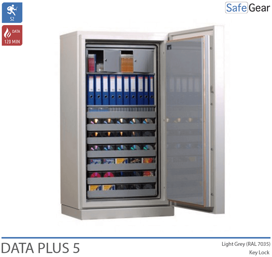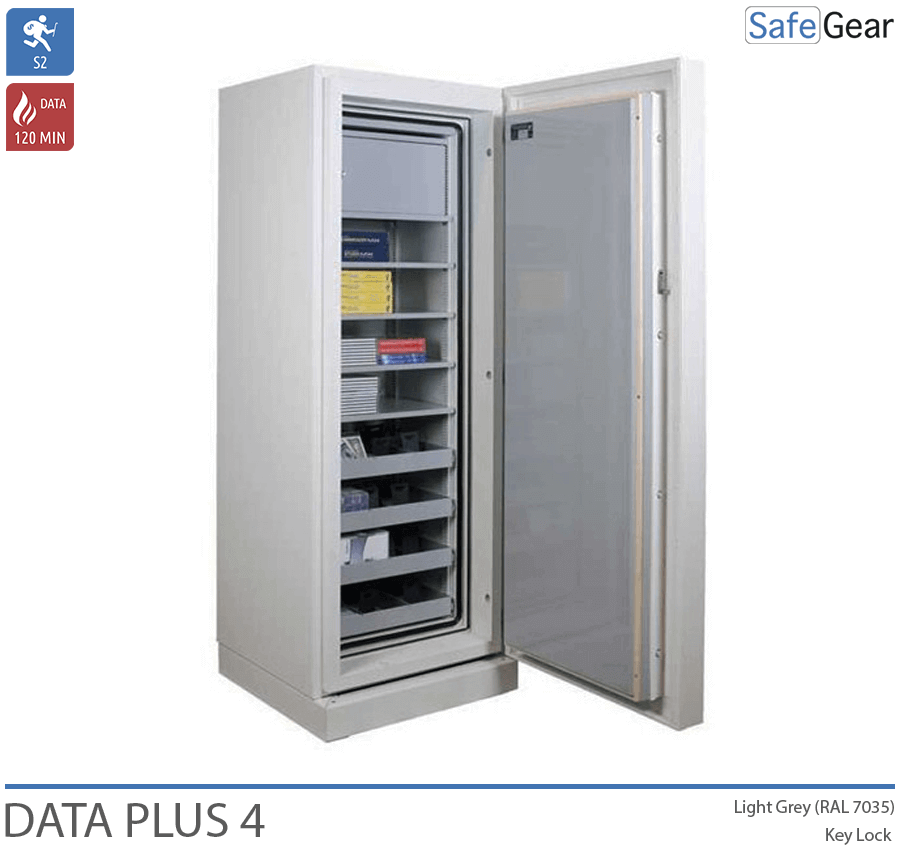Der Data Plus ist ein Datenschrank mit Brandschutztest für 120 Minuten, sichert dadurch optimale Bedingungen für Datenträger zum Schutz vor Feuer und verfügt über einen Einbruchssicherheitstest der Stufe S2.