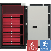 Der Wertschrank Brixia Uno ist diebstahlgesichert mit Widerstandsgrad I nach dem europäischen Sicherheitsstandard EN 1143-1 der ECB-S Deutschland.