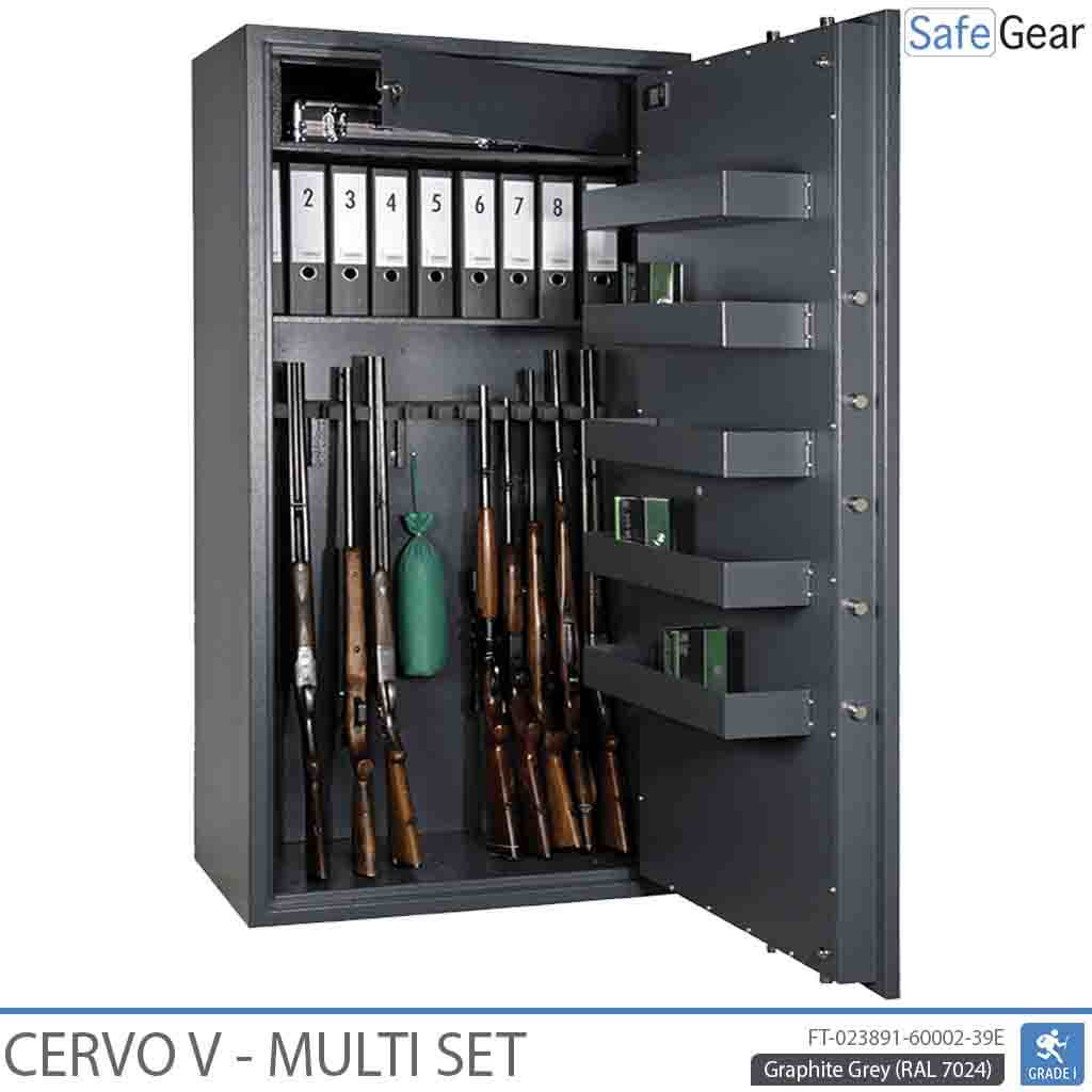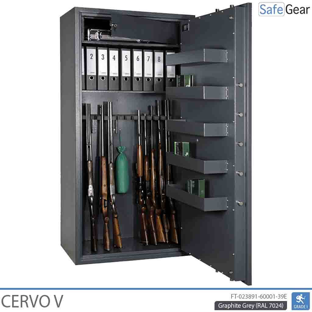 Der CERVO Waffenschrank ist ideal für lange Waffen wie z.B Jagdgewehre. Dieser Waffentresor kann nicht nur deine Schusswaffen schützen sondern auch Wertsachen wie z.B ein Zielfernrohr, Munition, Bargeld oder wichtige Dokumente.