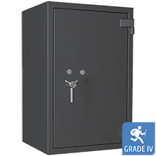 Der zertifizierte Pegasus IV ist mit einer Notfallveriegelung ausgestattet, was das Öfnnen des Tresors in einem Einbruchversuch um ein Vielfaches erschwert. Zusätzlich sind Schloss und Riegel verstärkt worden, um jedes Risiko zu vermeiden.