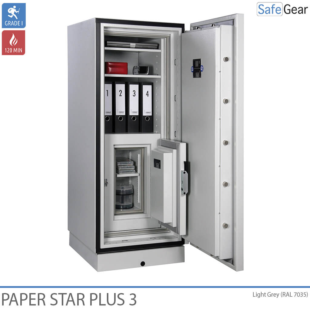 Der Paper Star Plus Wertschutzschrank ist getestet in der Widerstandsklasse 1 und zertifiziert durch die ECB-S gemäß des Standards EN 1143-1. Zusätzlich verfügt der Tresor über einen Brandschutz und schützt Ihre Wertsachen vor Feuer für einen Zeitraum von 120 Minuten